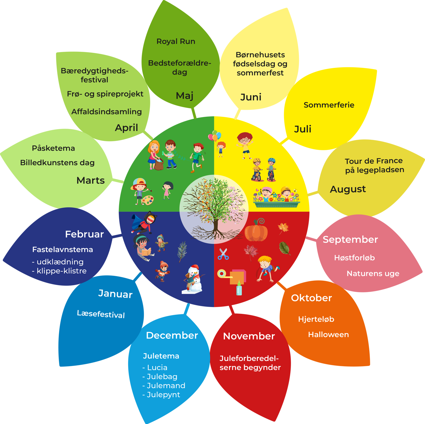 Vi nyder hverdagen med rutiner og aktiviteter såvel som dage med specielle aktiviteter. Fælles for vores aktiviteter er, at læreplanstemaerne altid er tænkt ind.